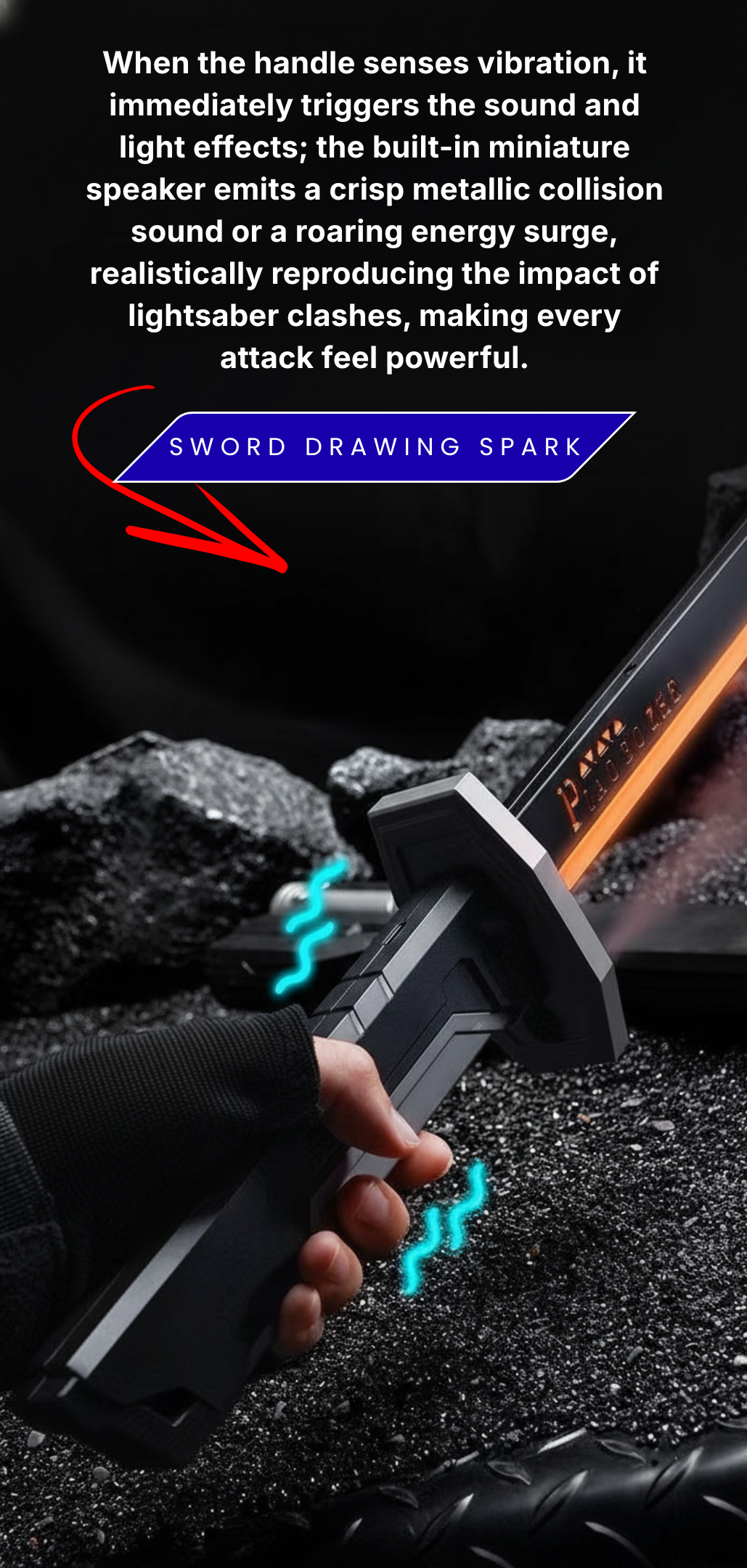 When you pull the blade out pressing the button on the handle, the LED core activates instantly, creating a burst of sparks for a dramatic, movie-style moment. It’s safe, controlled, and insanely cool to watch.