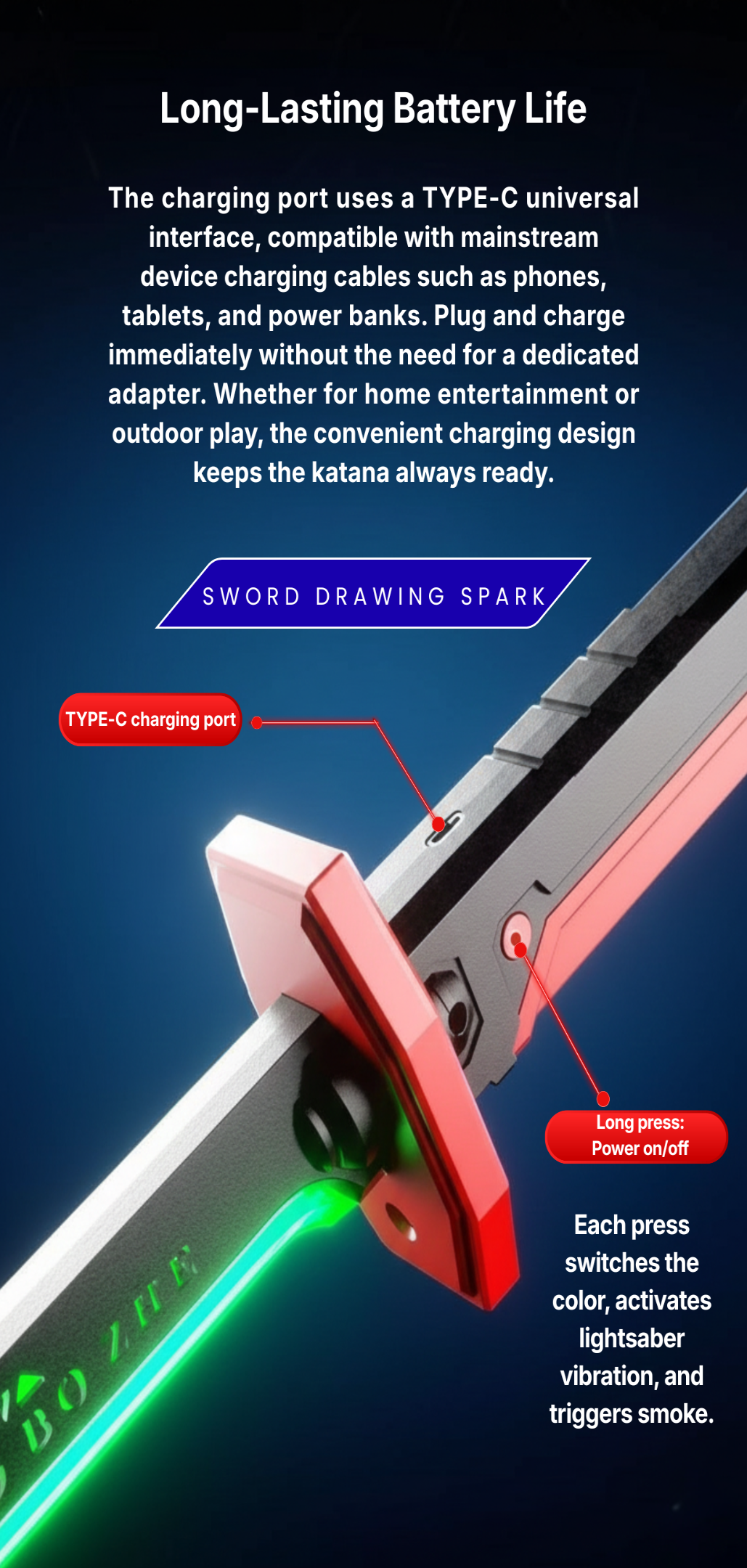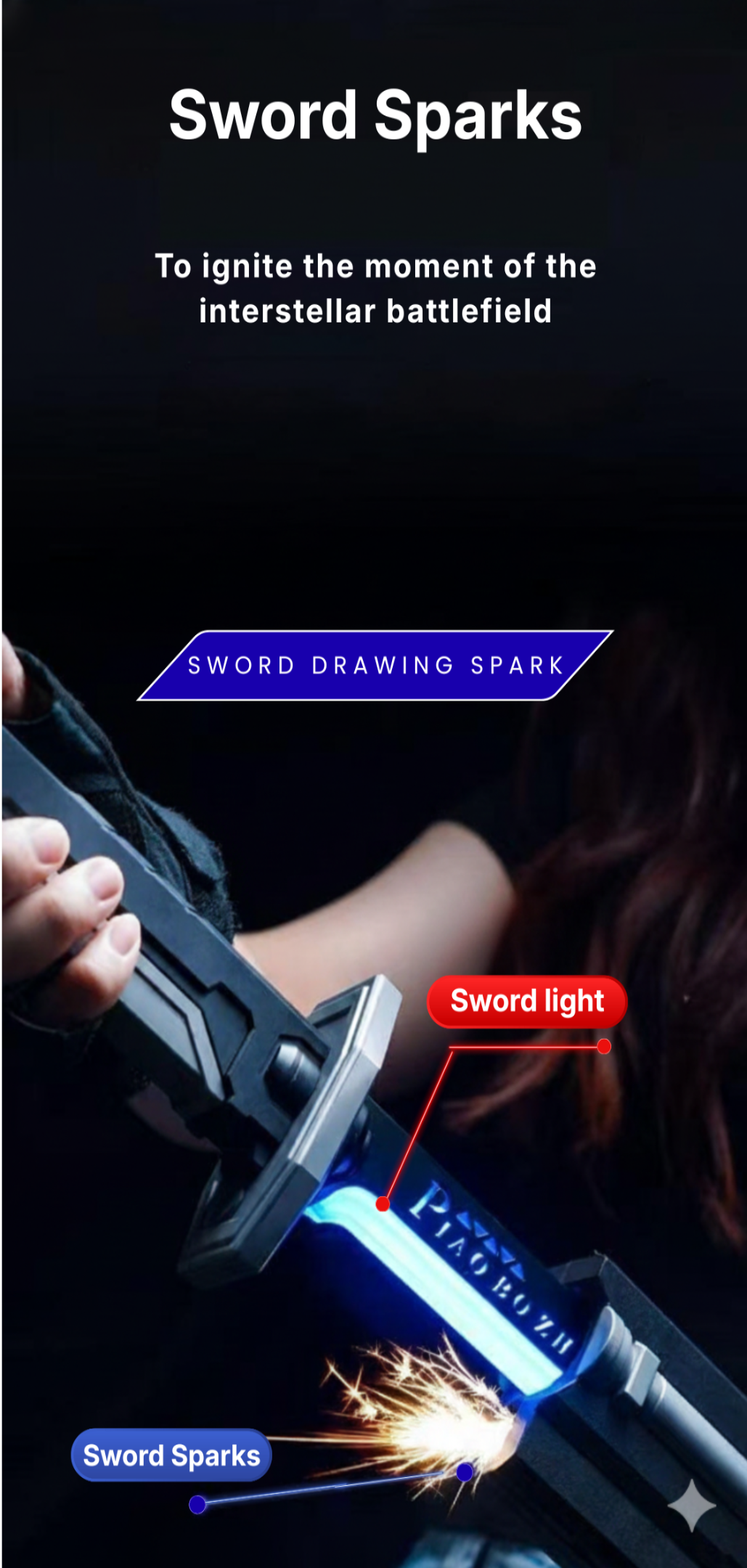 Yes — the sparks are generated using a safe, low-heat mechanism. The blade is designed for visuals, cosplay, display, and light swings. It’s not meant for contact sparring or rough impact. It has a harmless edge